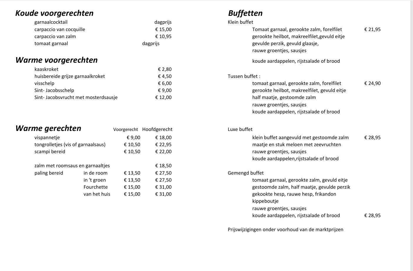 Door de duurdere prijs van de garnalen en de zalm zijn alle buffetten €1.95 /pp tijdelijk duurder geworden !!